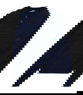 Slips on. Relaxed fit, round neck, long sleeves, anagram embossment to front, all-over striped pattern. Midweight, slight stretch.