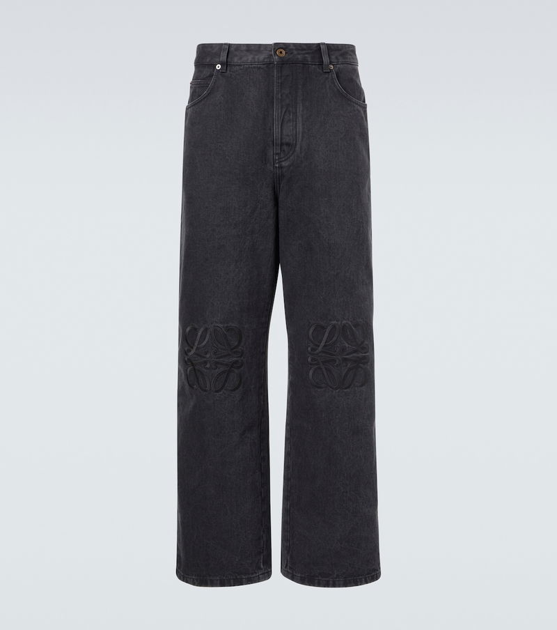 These wide-leg jeans from Loewe are emblazoned with the brand's Anagram embroidery at the knees. The pair is made from denim in a black wash and has a high-rise silhouette with a baggy fit.