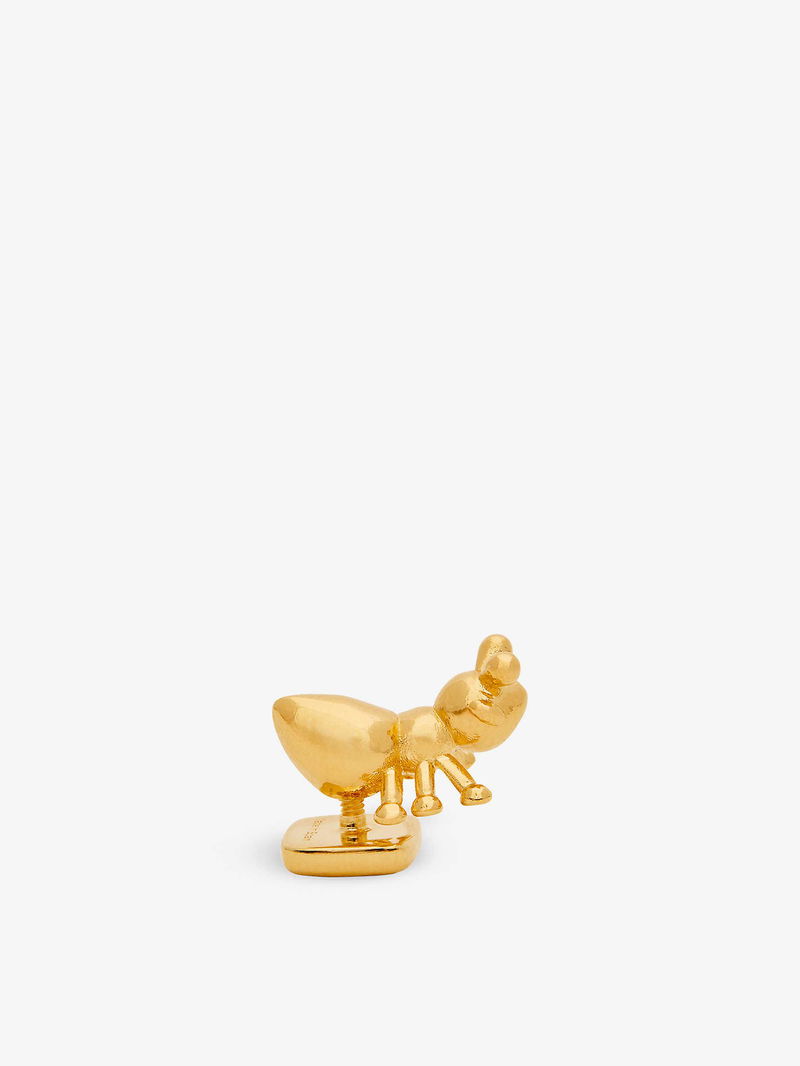 Loewe brass pin. Ant shaped, polished finish, Anagram engraved base.