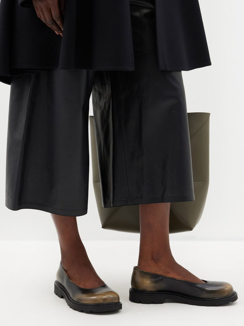 Patinated black and beige calfskin leather lends LOEWE's Blaze ballet flats a well-worn look, with chunky tread soles adding an element of edge.