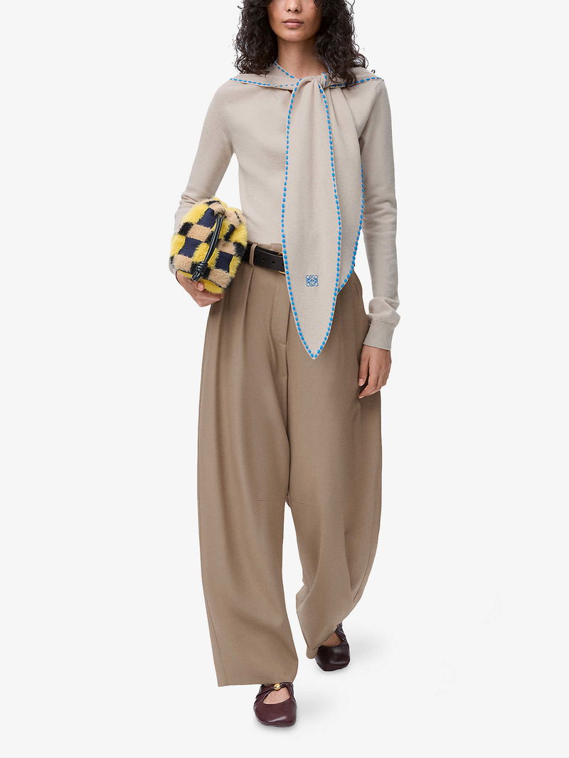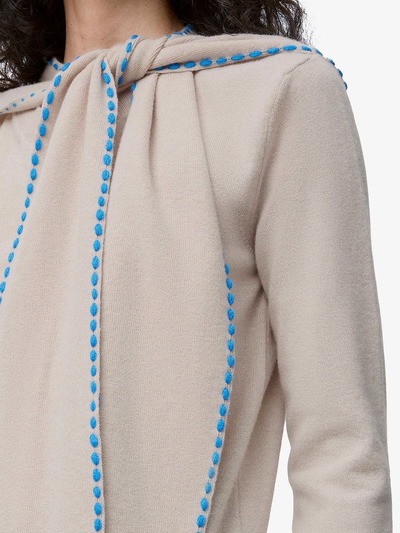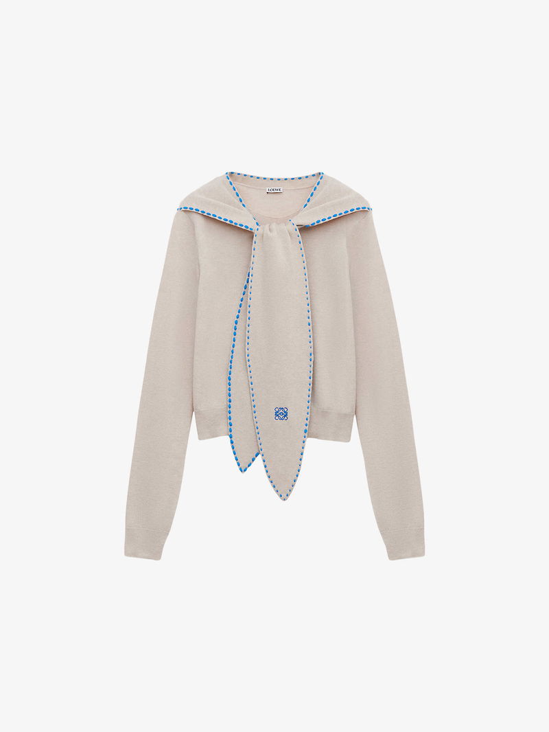 Brand-Embroidered Scarf-Detail Wool-Blend Jumper