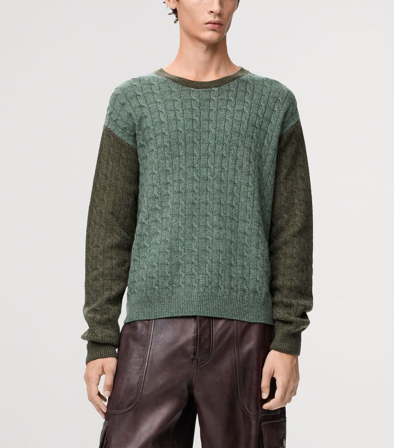 Cashmere-Blend Two-Tone Cable-Knit Sweater
