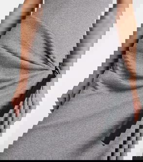 This asymmetric midi dress has a checked panel on the front and back.