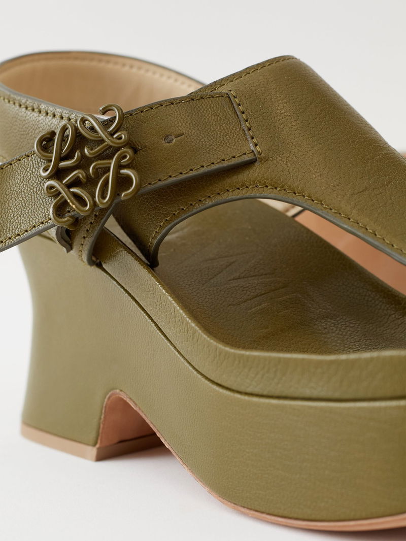 LOEWE'S khaki-green Comfort sandals are made of grained leather set on a chunky platform sole and finished with enamelled Anagram buckles.