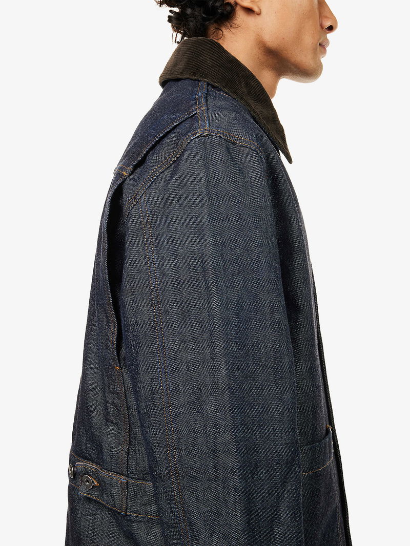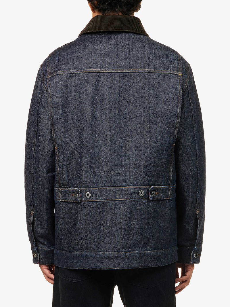 Corduroy-Collar Regular-Fit Denim Jacket