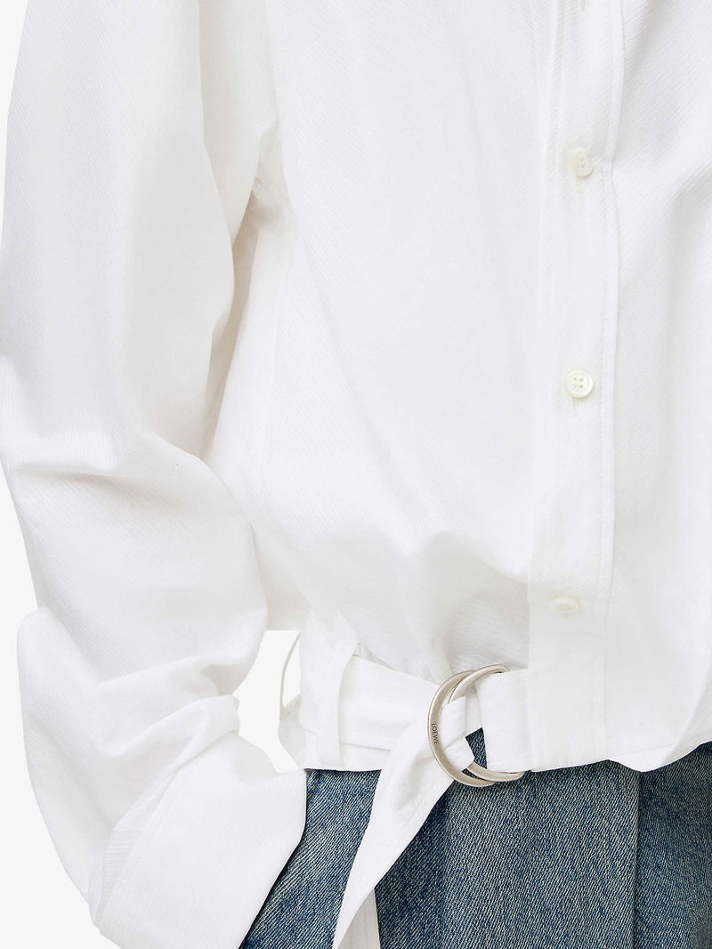 Draped Long-Sleeve Cotton Blend Shirt