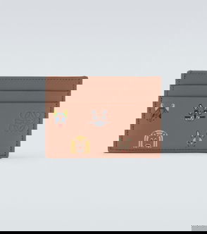 Loewe leather card holder. Rectangular shape, foiled branding at front, embossed design and four card slots at front and back, grained lather panel at front and back, central slip pocket, internal debossed branding, fully lined.