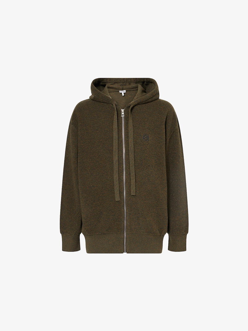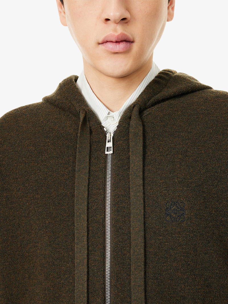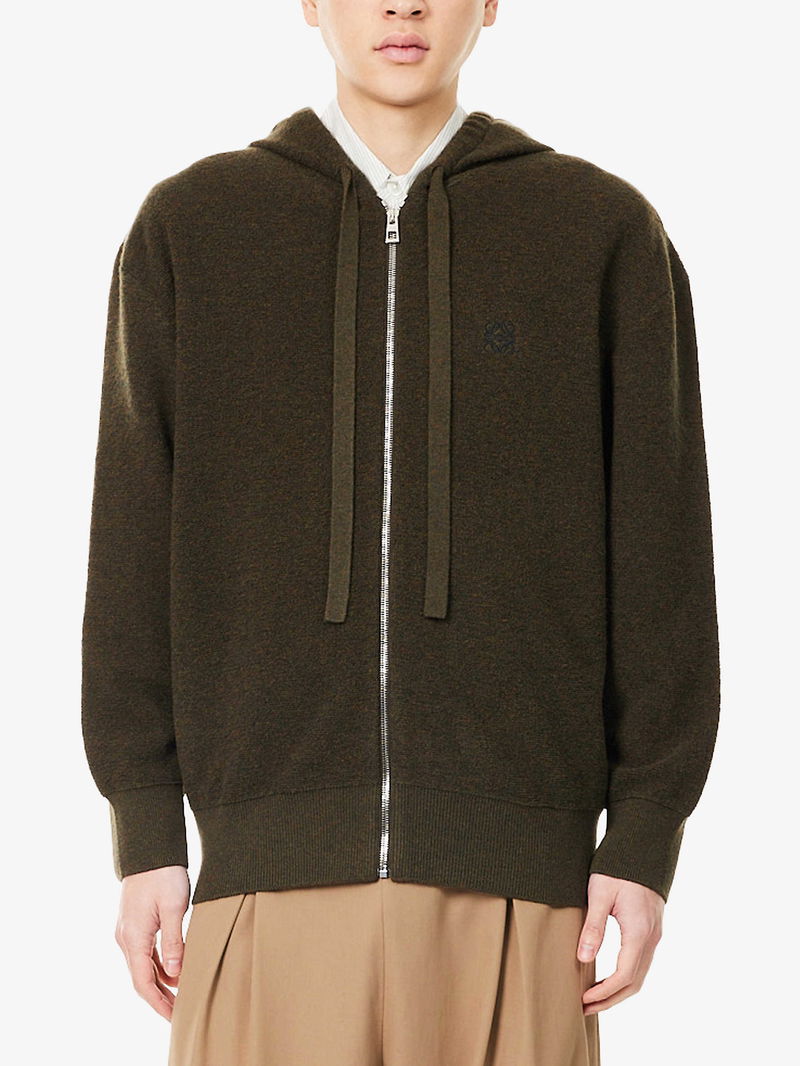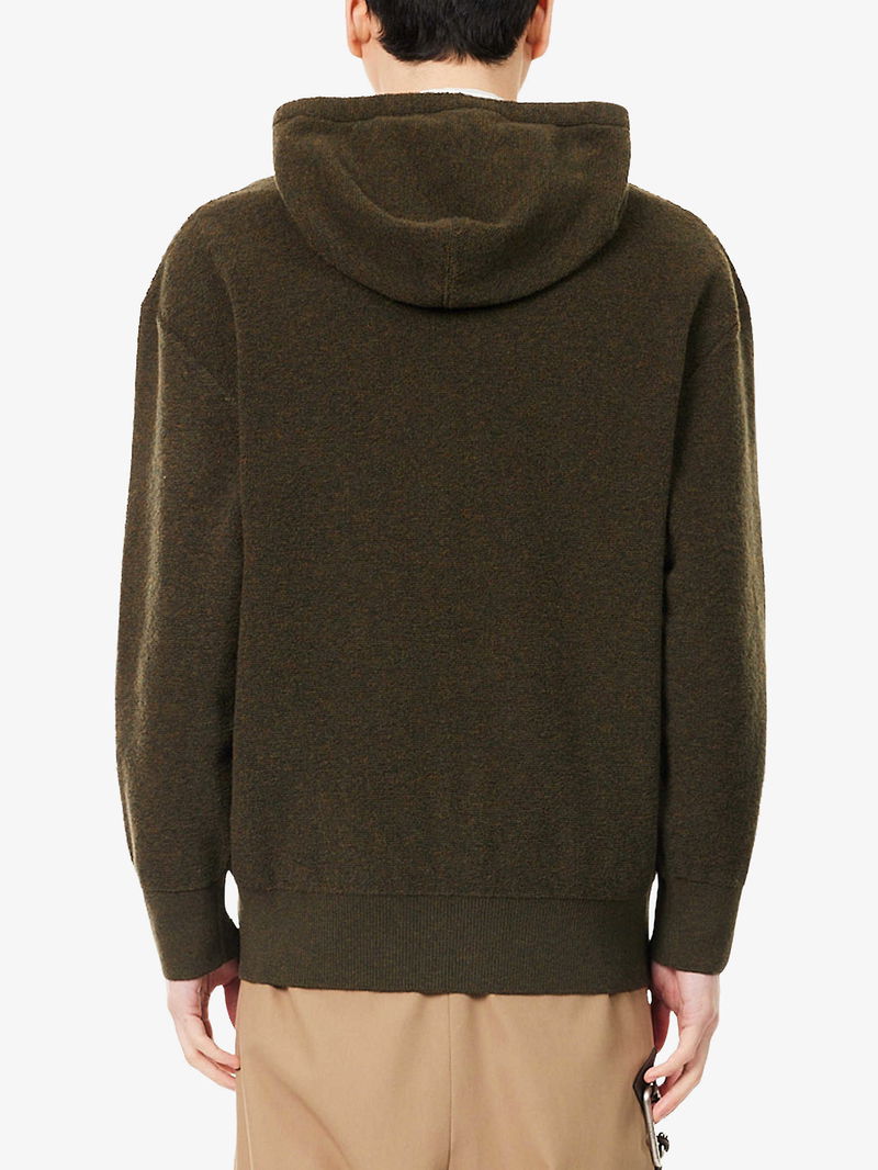 Embroidered-Emblem Zip-Up Wool Hoody