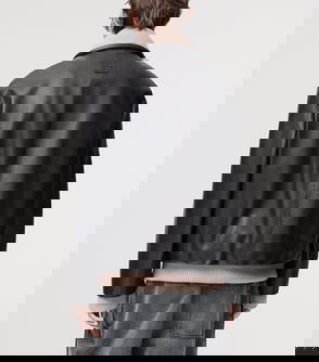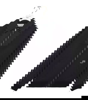 Loewe woven-blend jacket. Exposed zip fastening at front. Relaxed fit, high neck, drawstring hood, long sleeves, two zip pockets at front, leather trims, all-over fleece texture. Midweight, stretchy.