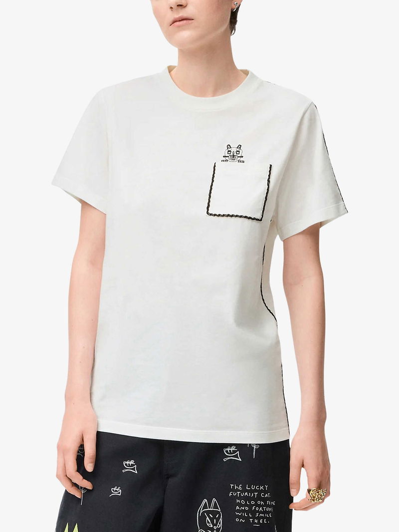 Futuristic Cat Branded Cotton-Blend T-Shirt