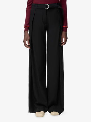 Gathered Wool Wide-leg Pants