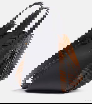 LOEWE’s tan Hammock bag takes inspiration from the hanging bed from which it takes its name and is crafted from leather with two top handles and a detachable shoulder strap.