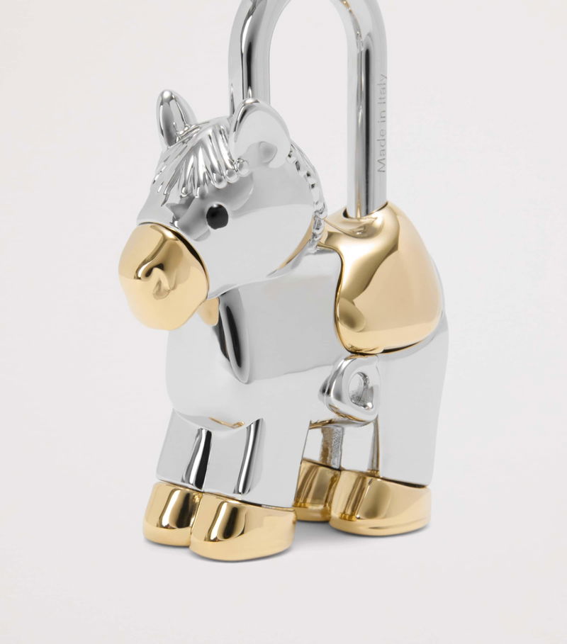 Whether it sits on your suitcase or on the handle of one of the House's leather bags, this padlock from loewe will always serve as a reminder of your exquisite style choices. Embodying the whimsy that comes so naturally to the brand, it boasts a horse-inspired design highlighted by gold and silver-tone hardware.