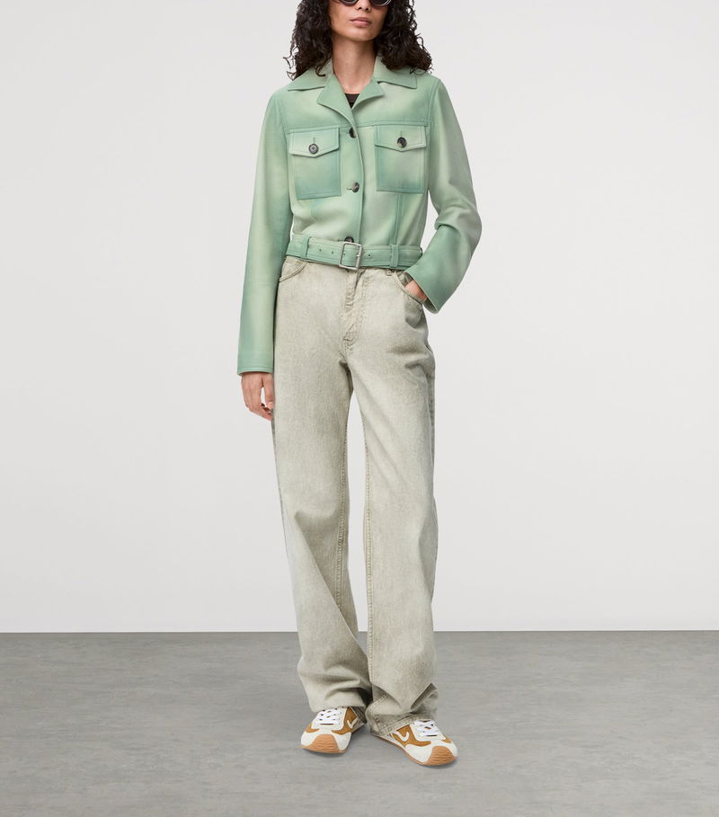 Shop More: Green Clothing Green Coats & Jackets Green Leather Jackets LOEWE Clothing LOEWE Coats & Jackets LOEWE Green Clothing LOEWE Leather Jackets