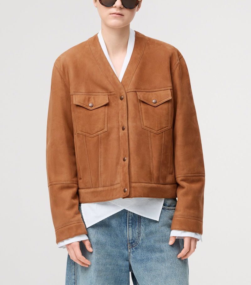 For when temperatures drop, this jacket is cut from buttery lambskin, with curly merino shearling to the interior providing extra softness and warmth to the drop-shoulder silhouette.