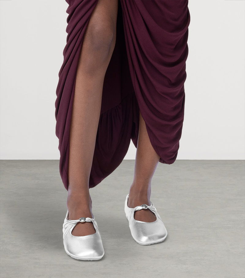 Shop More: Silver Shoes Silver Flats Silver Ballet Flats LOEWE Shoes LOEWE Flats LOEWE Ballet Flats