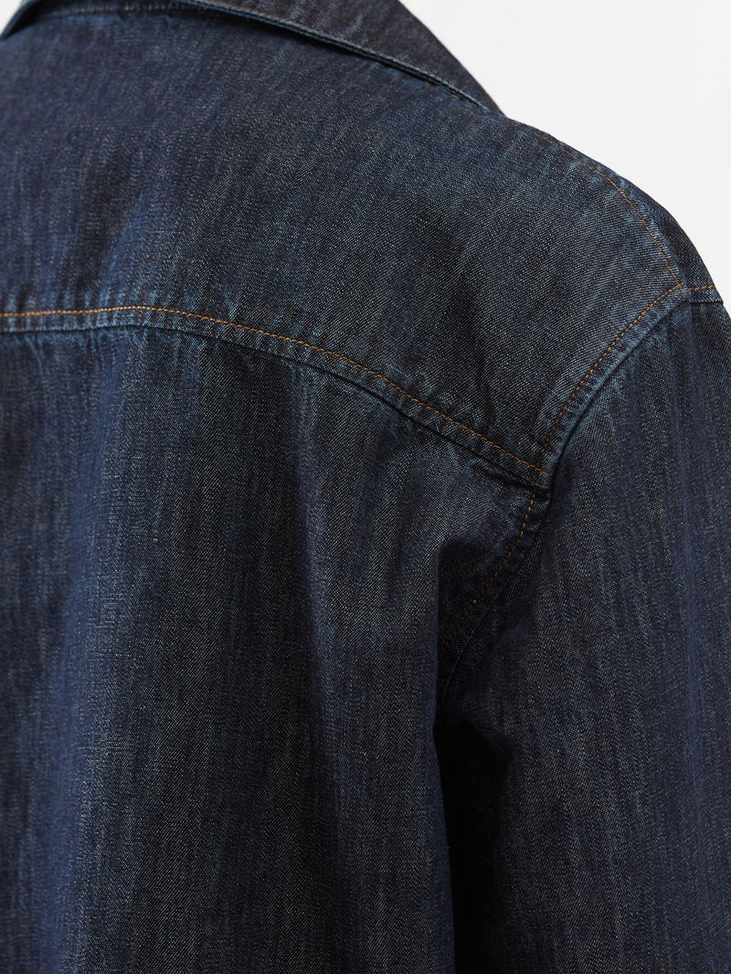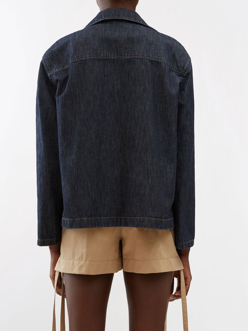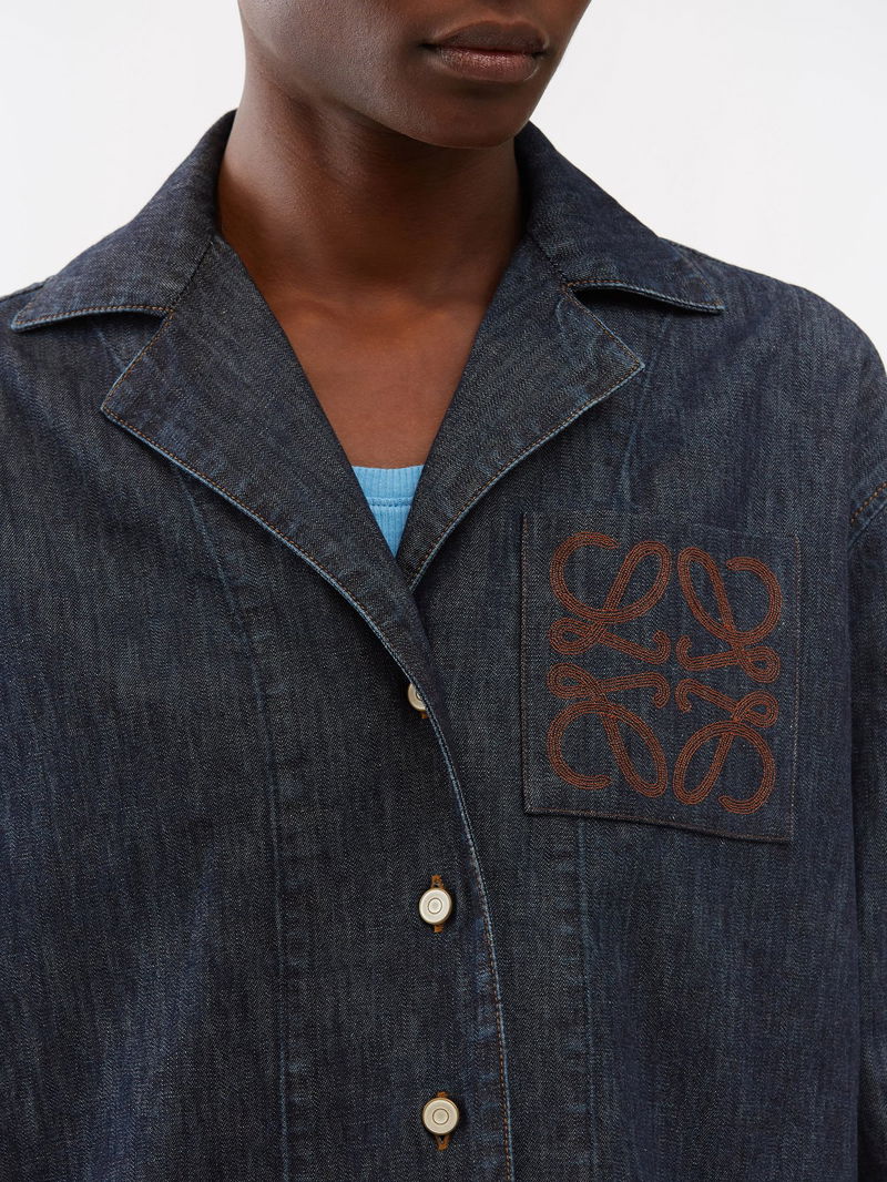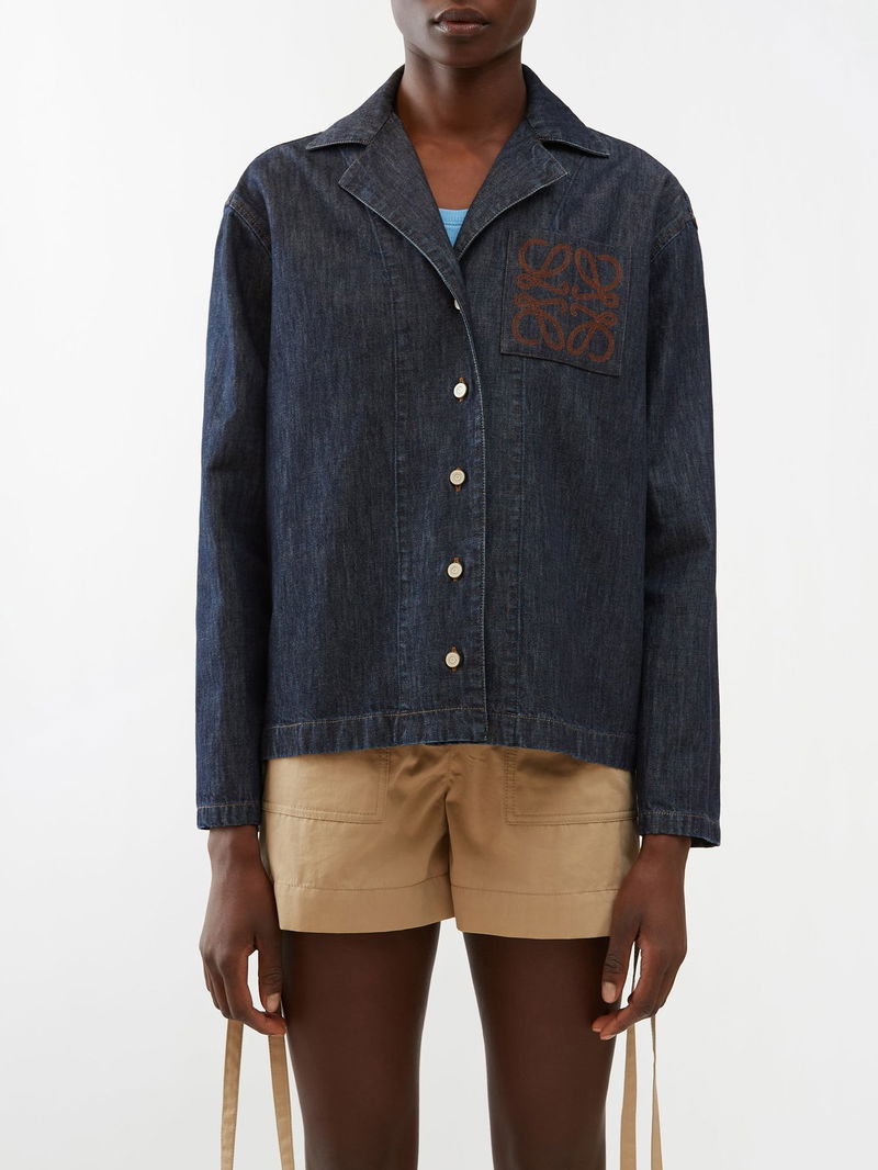 LOEWE’s dark blue denim jacket is embroidered with the house’s Anagram logo – an emblem designed in 1970 by Spanish painter Vincente Vela.