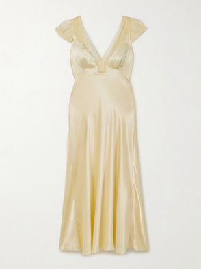 Debuted on Loewe's Spring '24 runway, this midi dress also captured attention when Aubrey Plaza wore it to the Emmys red carpet. It's made from lustrous silk-blend satin and has a dramatic pin embellishment threaded through the square-shaped front. The open back is framed by slim straps.