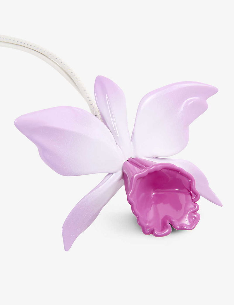 From the Bambi eyes of the prancing deer to the swooping wise-old owl, Jonathan Anderson has introduced a menagerie of motifs to Loewe’s jungle of playful styles. But, by the looks of the Orchid charm, it seems the label is wandering through the garden of inspiration. Cut from buttery leather, this knotted chain is festooned with a jovial charm sculpted to reflect the sinuous petals of the flower, sprouting beneath a dice-shaped bead engraved with the house’s entwined anagram.