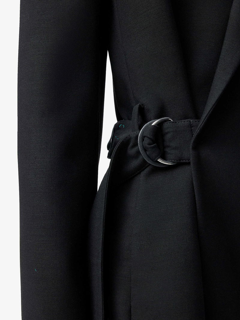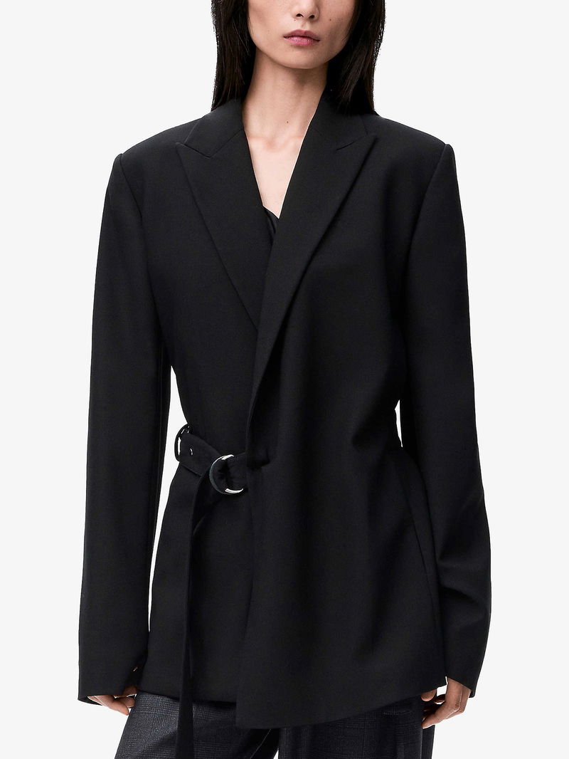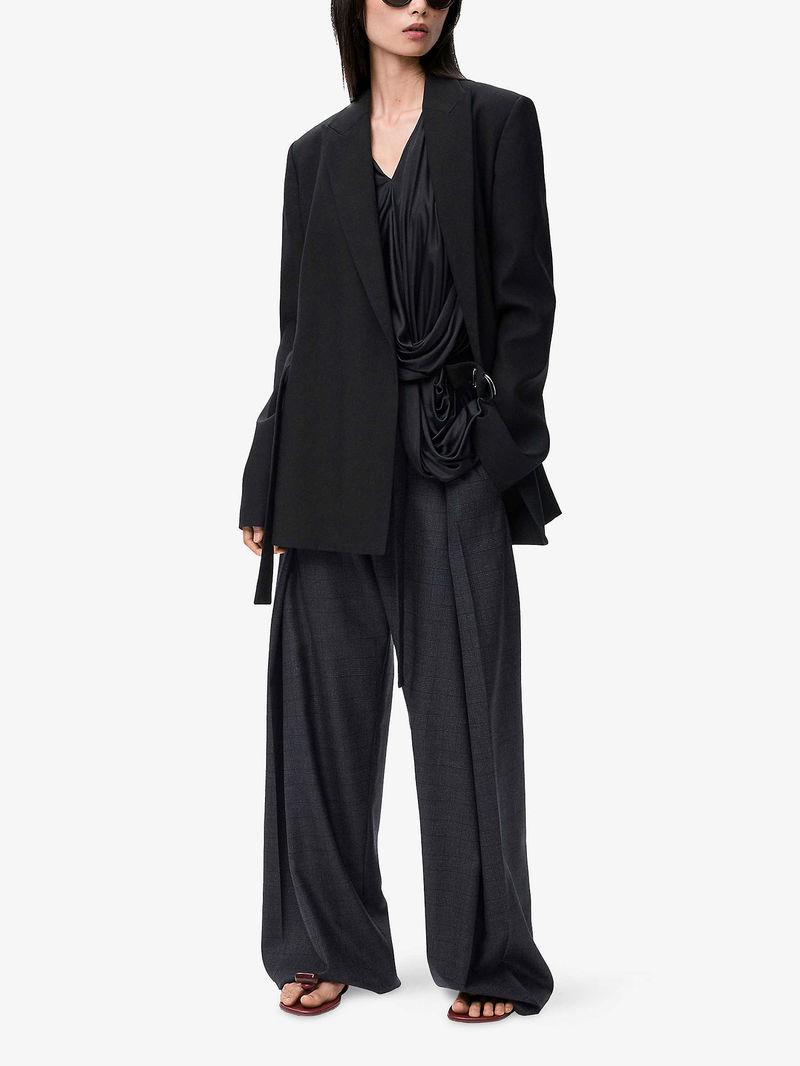 Peak-Lapel Draped Wool And Leather Blend Jacket