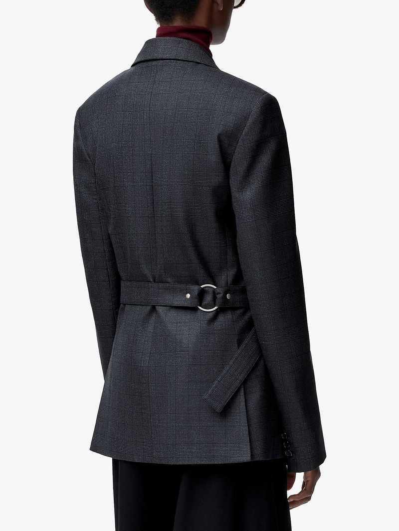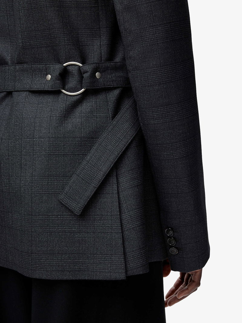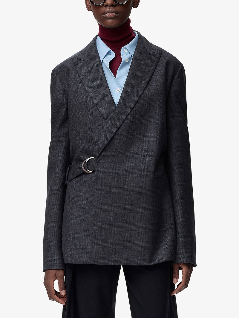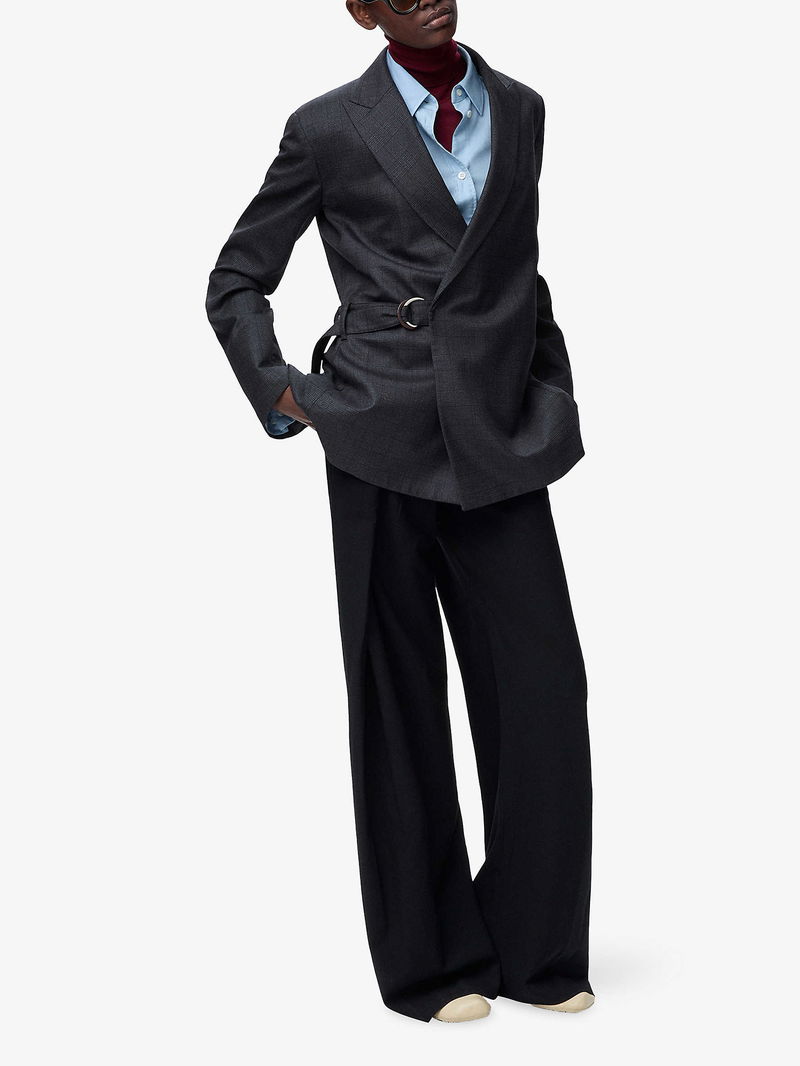 Peak-Lapel Draped Wool And Leather Blend Jacket