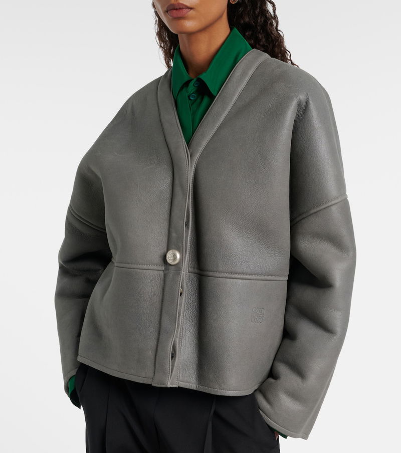 Loewe reimagines the classic cardigan silhouette with this jacket, crafted from soft leather. The design is lined in shearling for a cozy and comfortable finish, and detailed with a removable Anagram Pebble button.