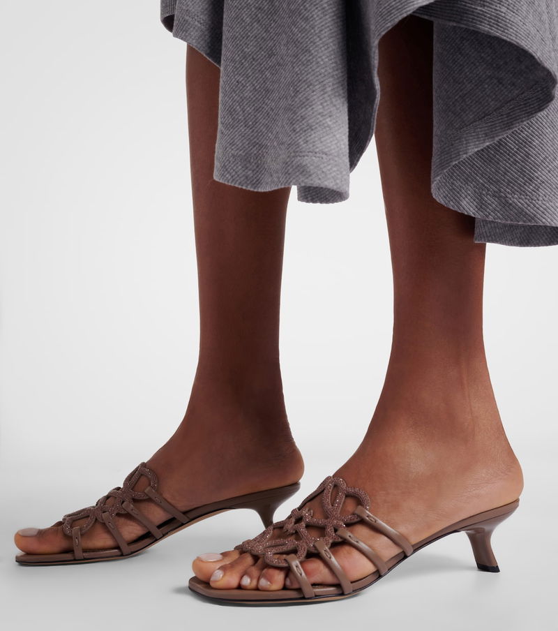 Petal Anagram Embellished Suede Mules