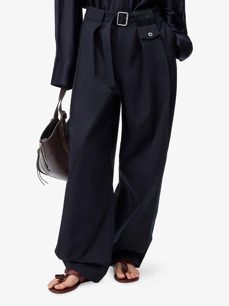 Shop More: Navy Clothing Navy Trousers LOEWE Clothing LOEWE Trousers LOEWE Wide Legged Trousers LOEWE Navy Clothing Navy Wide Legged Trousers