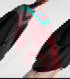 Suspending from a fuchsia-pink shoulder strap, Loewe’s emerald-green pleated-leather bracelet bag is a fine example of Jonathan Anderson’s innovative approach to design and craftsmanship.