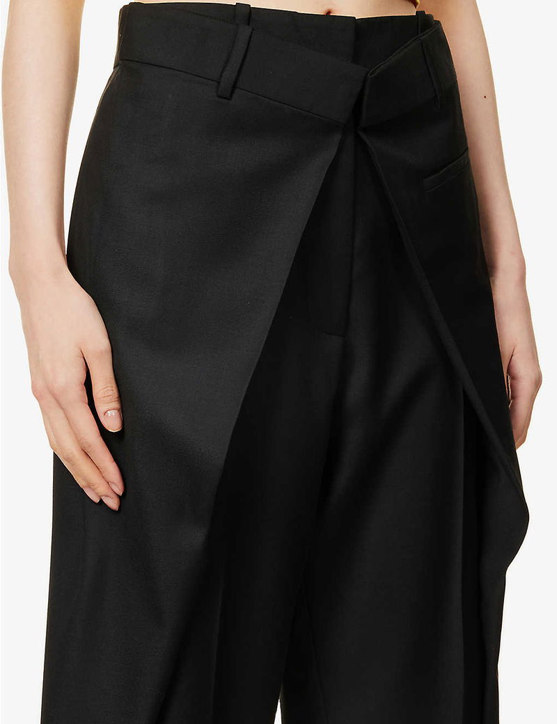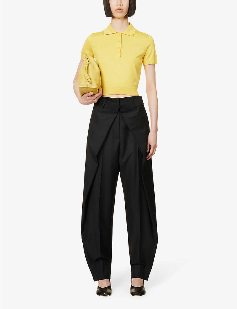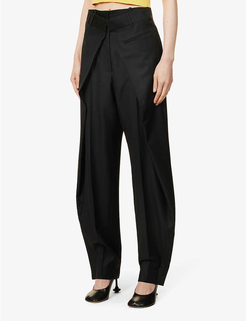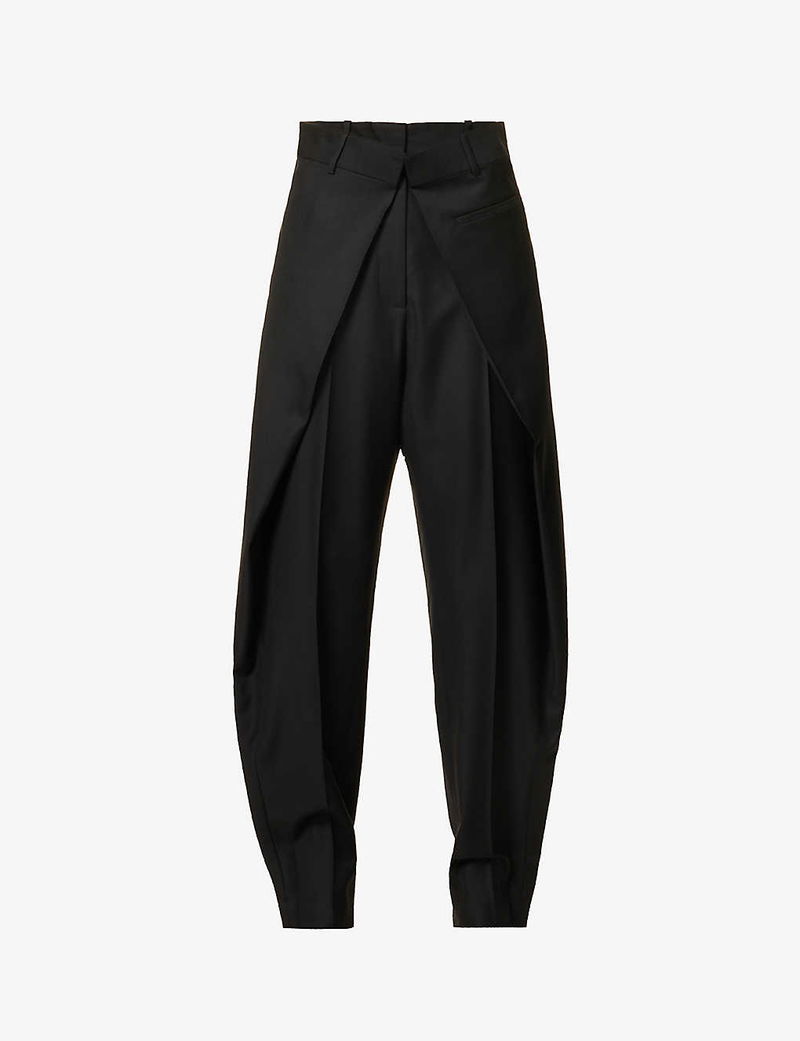 Loewe may possess a menagerie of motifs inspired by the magic and mysteries of the planet, but for SS23, Jonathan Anderson unearths the cruelties of nature, seeking inspiration in the poisonous anthurium flower. Plucked from the collection, these tailored trousers are spun from petal-fine wool and settle high on the hips before falling to a tapered-leg silhouette pinched with pressed creases descending its form, purposefully echoing the sculptural lines of the toxic bloom.