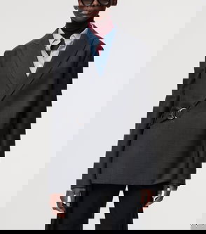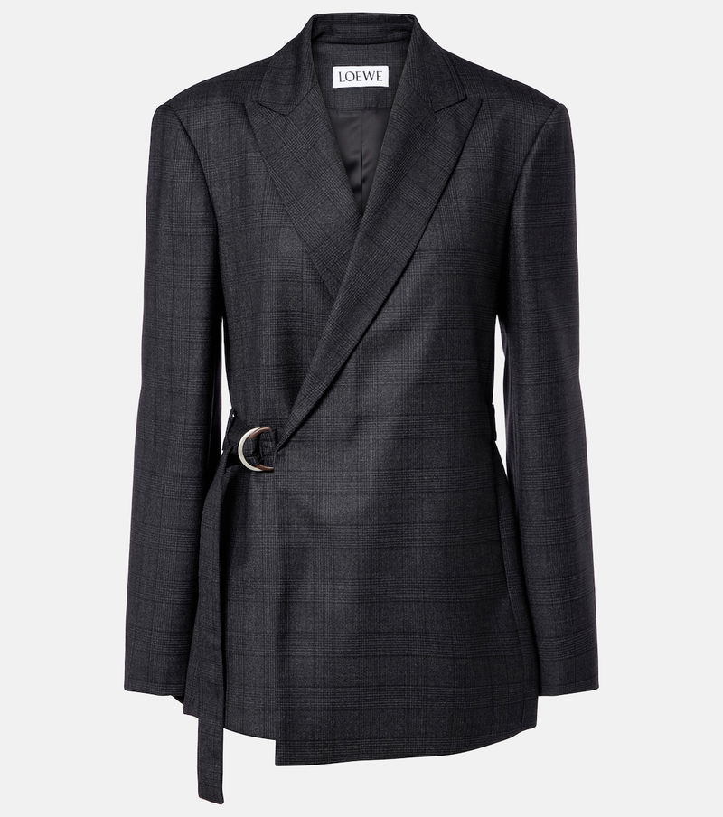 This jacket encapsulates Loewe's innovative and playful approach to design. Made from pure wool with a Prince of Wales checked pattern, this blazer is defined by a wrap silhouette, elegantly draping at the waist and secured with a belt.