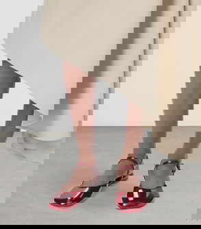 Ballet flats are en pointe this season. Loewe's 'Puffy' version is made from glossy leather that's padded for dimension and comfort and topped with a dramatic bow at the rounded toe. The slight heel adds subtle lift.