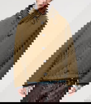 Relaxed fit, drawstring high-neck, long sleeves, two zip pockets at front, al-over smooth leather, fully lined, drawstring hem