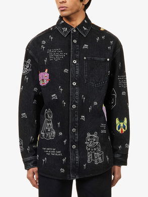 Relaxed fit, spread collar, long sleeves, buttoned cuffs, patch pocket and debossed branding at front, two welt pockets at front, straight yoke and pleats at back, all-over smooth leather, fully lined, split at sides