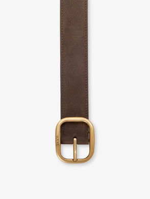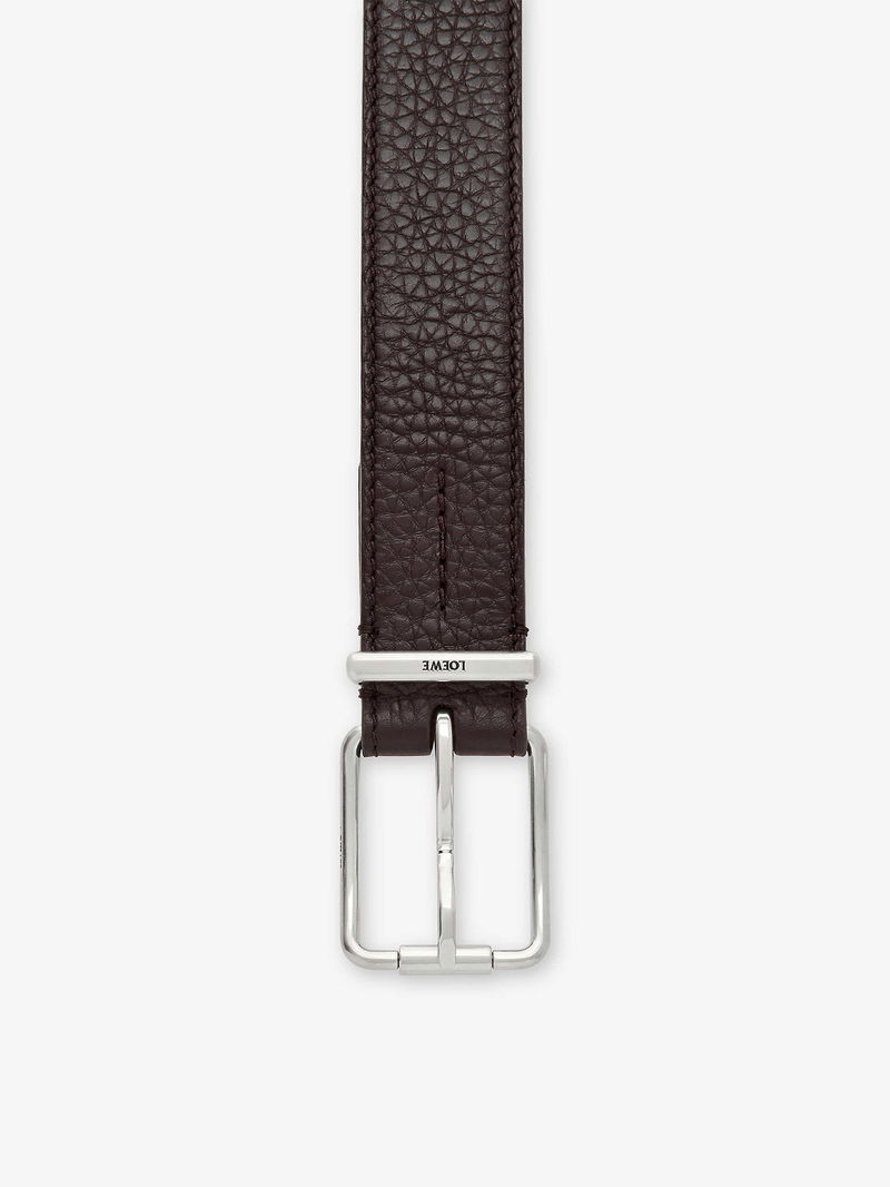 Loewe leather belt. Buckle fastening. Rounded buckle, grained leather, polished hardware.