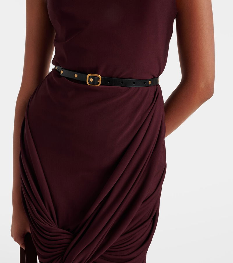 This belt from Loewe showcases a soft leather construction, complemented by gold-toned studs throughout. The design is secured by a gold-toned square buckle, showcasing the brand logo in engraved detail.