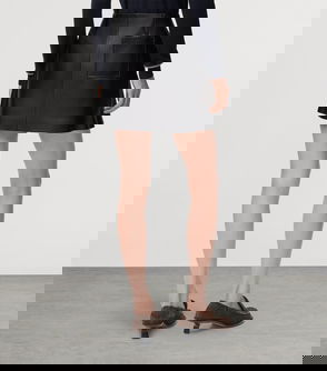Marking the resurgence of mini hemlines, loewe looks to its masterful leatherwork to inspire its latest creation. Made from a blend of cotton and silk, this skirt features the same wrap-around silhouette that the Spanish House has favoured among its tailored trousers in recent seasons, while the gathers and leather ties recall its iconic Flamenco purse.