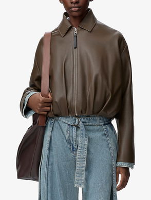 From the front, Loewe’s rendition of the classic bomber jacket stays staunchly similar to the original style, first worn by American pilots in WWII: its tonal, ribbed trims surround a traditionally boxy, high-neck and long-sleeved profile. However, we’re sure the soldiers would have enjoyed this buttery leather rendition much more – plus, the branded zip pulls and debossed logo pattern on the chest are even more of a bonus.
