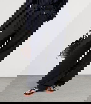 Take, for example, these tailored trousers - the lightweight wool suiting is brought in by the D-ring belted waist, accentuating the volumes of the wide-leg silhouette.