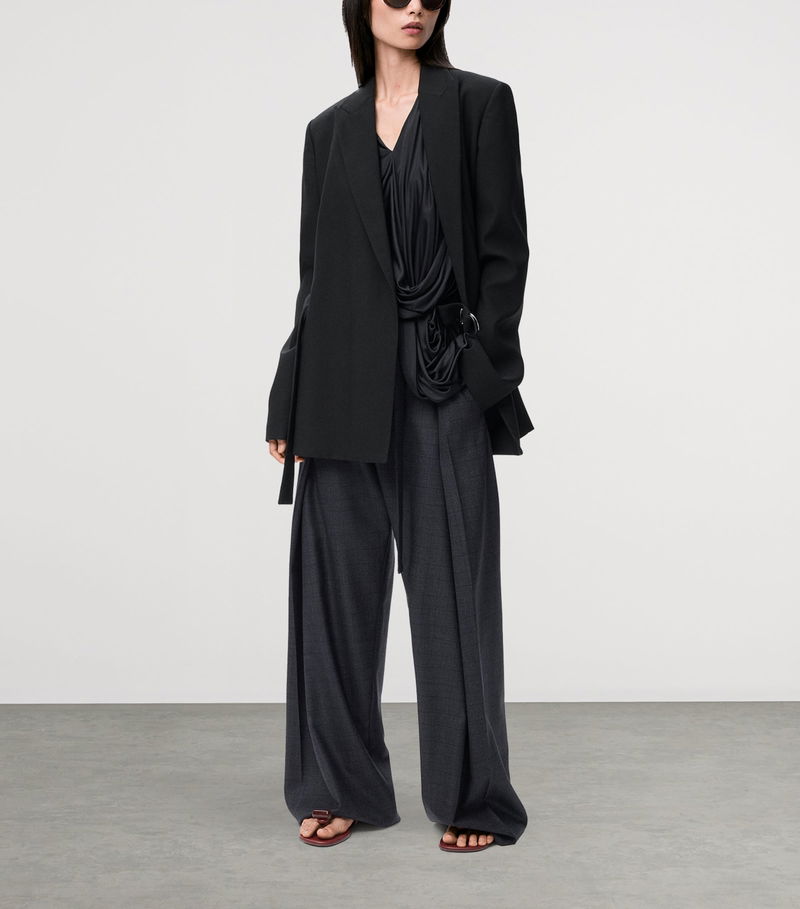 Take, for example, these tailored trousers - the lightweight wool suiting is brought in by the D-ring belted waist, accentuating the volumes of the wide-leg silhouette.
