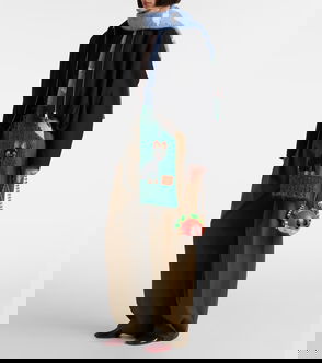 Made in Collaboration with Louis Wain, this Loewe clutch steals the spotlight with its distinctive shape and leather marquetry. Inspired by the artist's "Futurist Cats" porcelain vase series, the piece arrives with a detachable and adjustable strap.