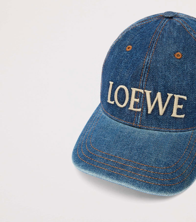 loewe lends everyday essentials a crafted edge with this classic baseball cap. Made from washed denim, it features contrast topstitching and an oversized embroidered logo across the front.