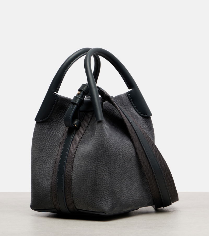 The Bale bucket bag by Loro Piana is crafted from grained leather and comes with the brand's logo at the base. This Micro iteration is finished with a removable strap for crossbody wear and a detachable pouch.