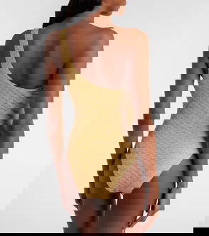 Every Loro Piana design combines the best of Italian craftsmanship with the finest raw materials. Made from stretchy microfiber, this sleek one-shoulder design is finished with a small enameled lifebelt stitched to the hip.