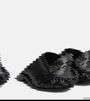 Penny Suede-Trimmed Patent Leather Penny Loafers