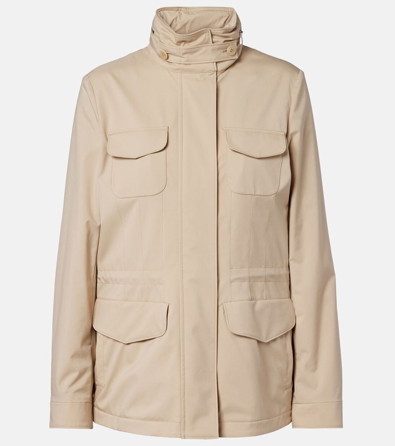 The Windmate® Traveller field jacket from Loro Piana is crafted in the brand's signature Wind Stretch Storm System®, a microfiber that is ultra-lightweight and coated with a water-resistant finish. The versatile design is complete with a stand collar and a removable, stowaway hood.