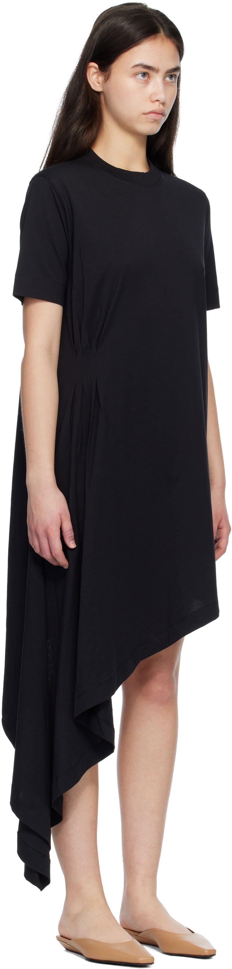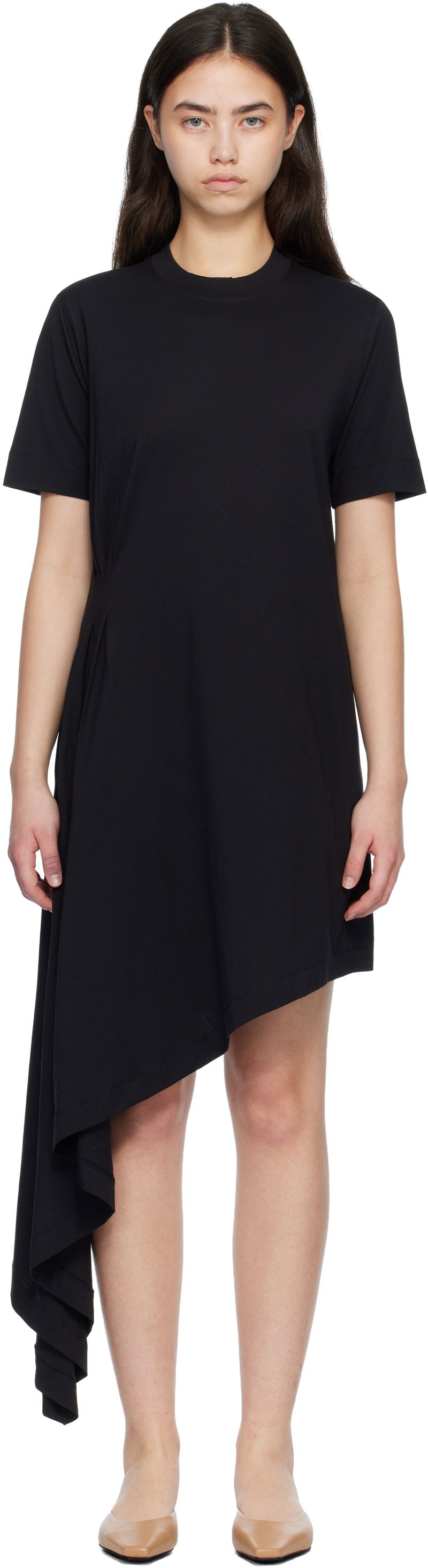 Black IGARI Asymmetric T-shirt Midi Dress