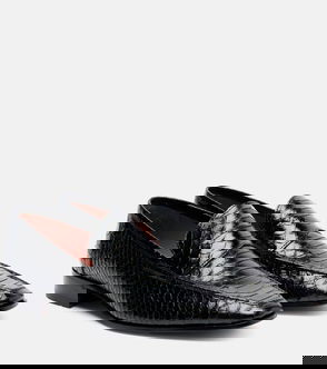 Loafers, Croc-effect leather, Square toe, Slight heel, Slip on, Leather sole.