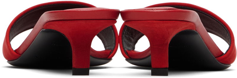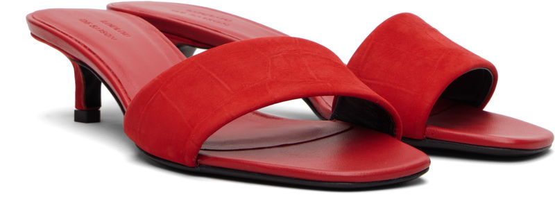 Croc-embossed calfskin suede heeled sandals.