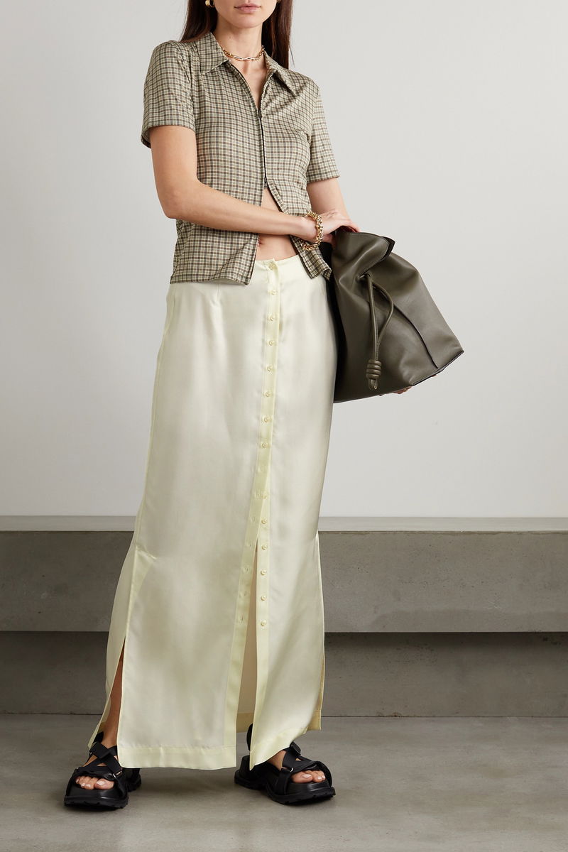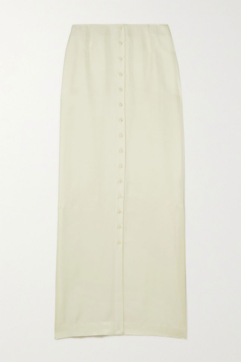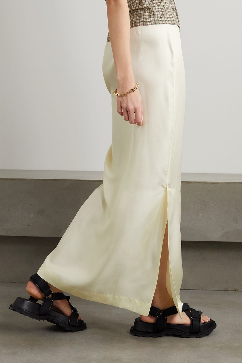 When it comes to chic summer separates, LOULOU STUDIO's collections will never let you down. This 'Naroi' maxi skirt is cut from lustrous silk-twill in 'Soft Vanilla' and has a back split for comfortable wear. Team yours with a tonal tank and sandals.
